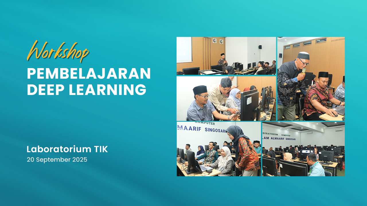 Demi meningkatkan kualitas pendidikan yang terus berkembang, Sabtu ini (20/9/2025), SMA Islam Almaarif Singosari menyelenggarakan Workshop Pembelajaran Deeplearning. Tujuan utama dari workshop ini adalah memberi bekal kepada tenaga pendidikan untuk mempersiapkan peserta didik sebaik-baiknya menghadapi zaman yang terus maju dan berkembang. Diharapkan setelah workshop ini seluruh guru SMA Islam Almaarif Singosari mampu mempersiapkan peserta didik memahami konsep secara mendalam—bukan hanya menghafal, mengembangkan keterampilan abad ke-21 seperti berpikir kritis dan kreatif, serta mempraktikkan pengetahuan untuk menyelesaikan masalah di kehidupan nyata.